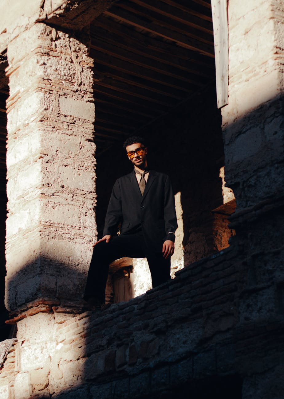 Artistic portrait of a person outdoors with motion blur effect, emphasizing movement and expression.