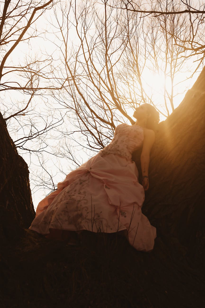 Artistic portrait of a person outdoors with motion blur effect, emphasizing movement and expression.