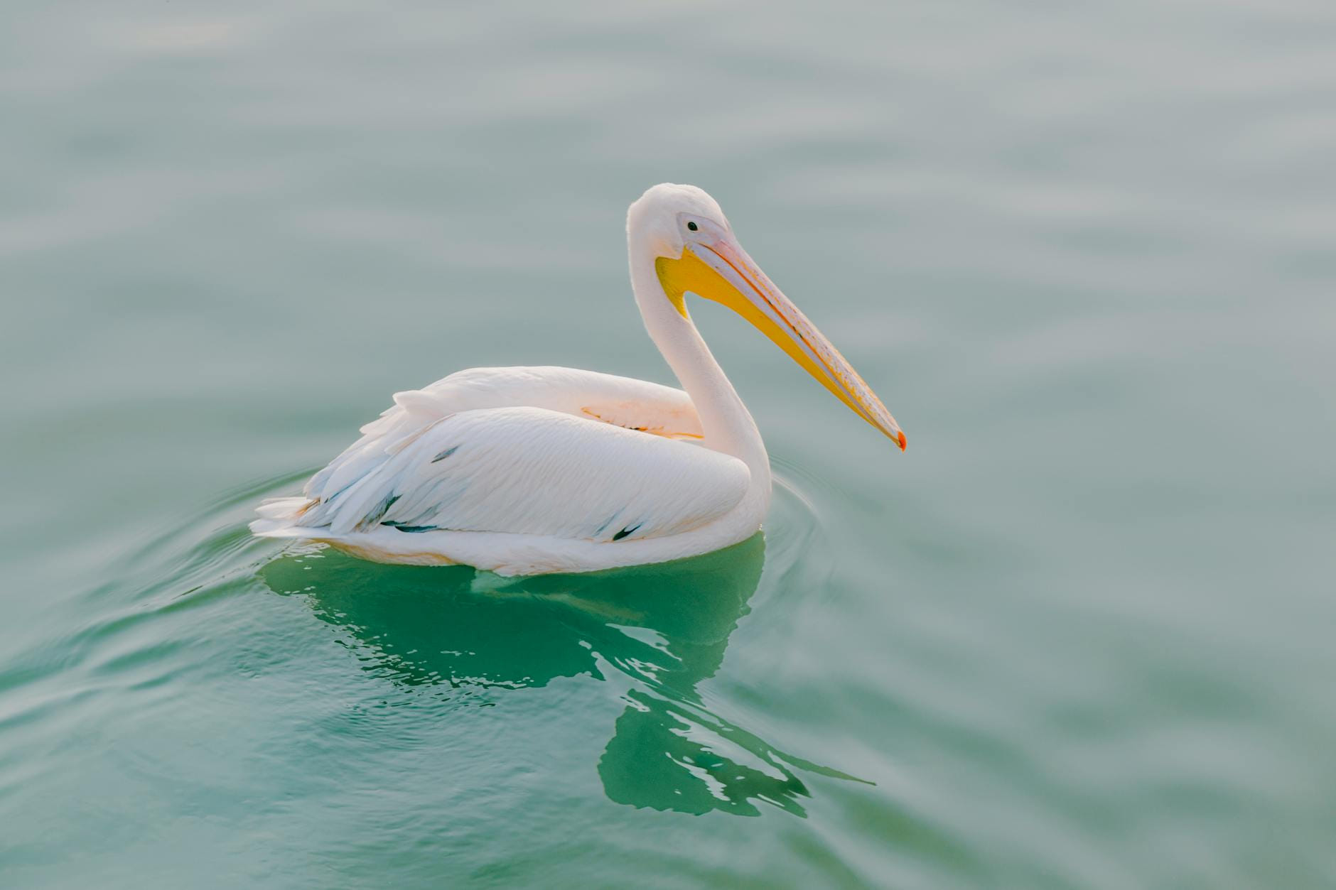 A silhouette of a seagull flying over the ocean at sunset against a vibrant sky.