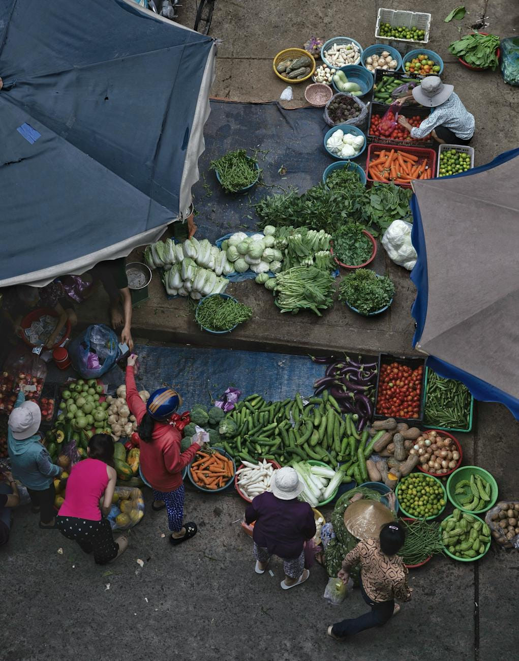 Two smiling farmers showcasing their leafy harvest in the lush fields of Bali, Indonesia.
