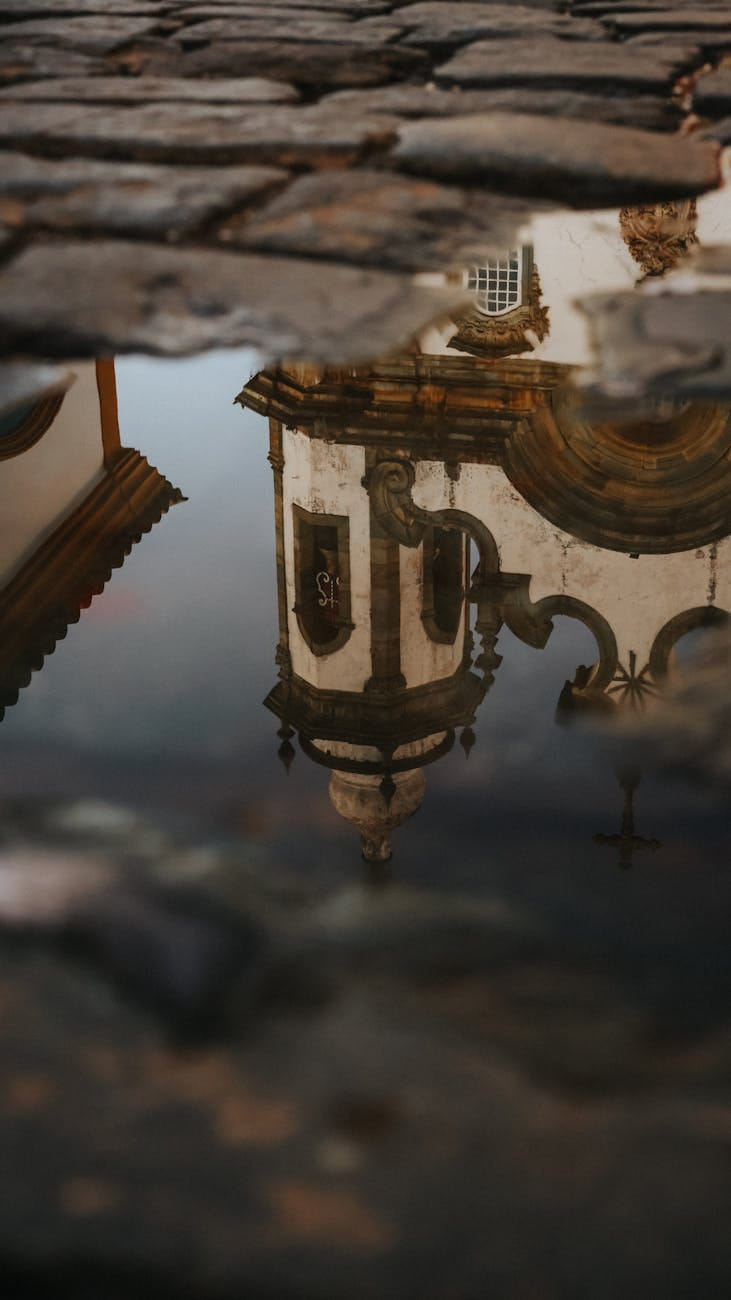 Artistic blur of skyscrapers reflecting on water, creating an abstract cityscape.