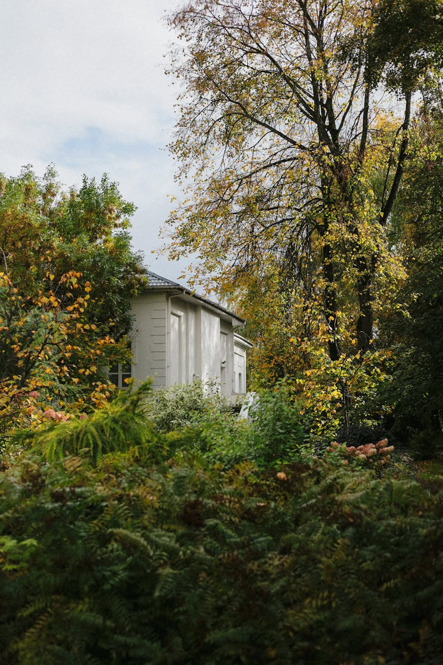 Vintage wooden house facade with charming window and vibrant potted flowers.