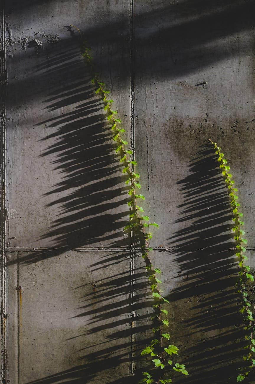 Elegant old building facade with sunlight filtering through autumn leaves, creating a warm, nostalgic atmosphere.