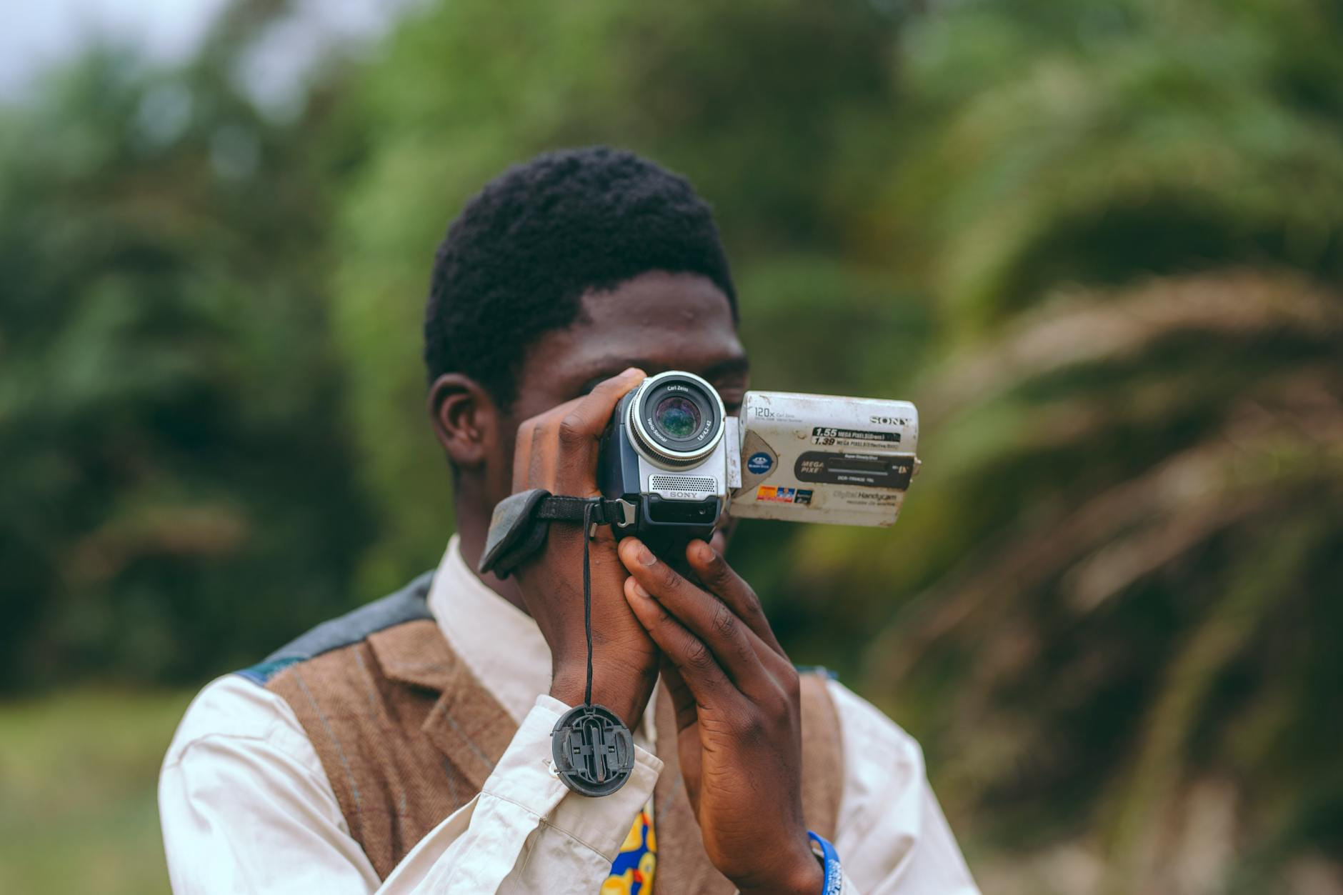 Artistic portrait of a person outdoors with motion blur effect, emphasizing movement and expression.