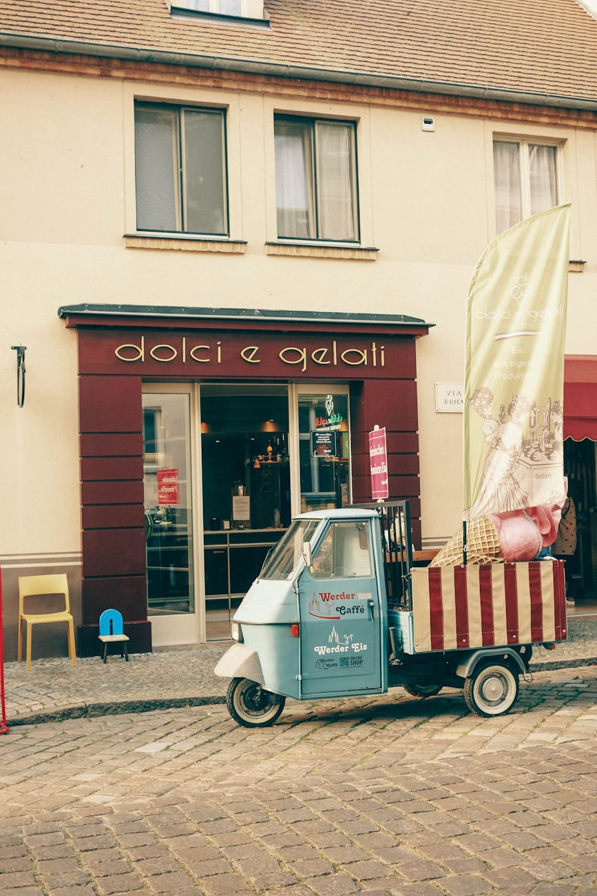 Old fireplace with colorful tiles in a rustic, weathered interior with vintage art framed above.