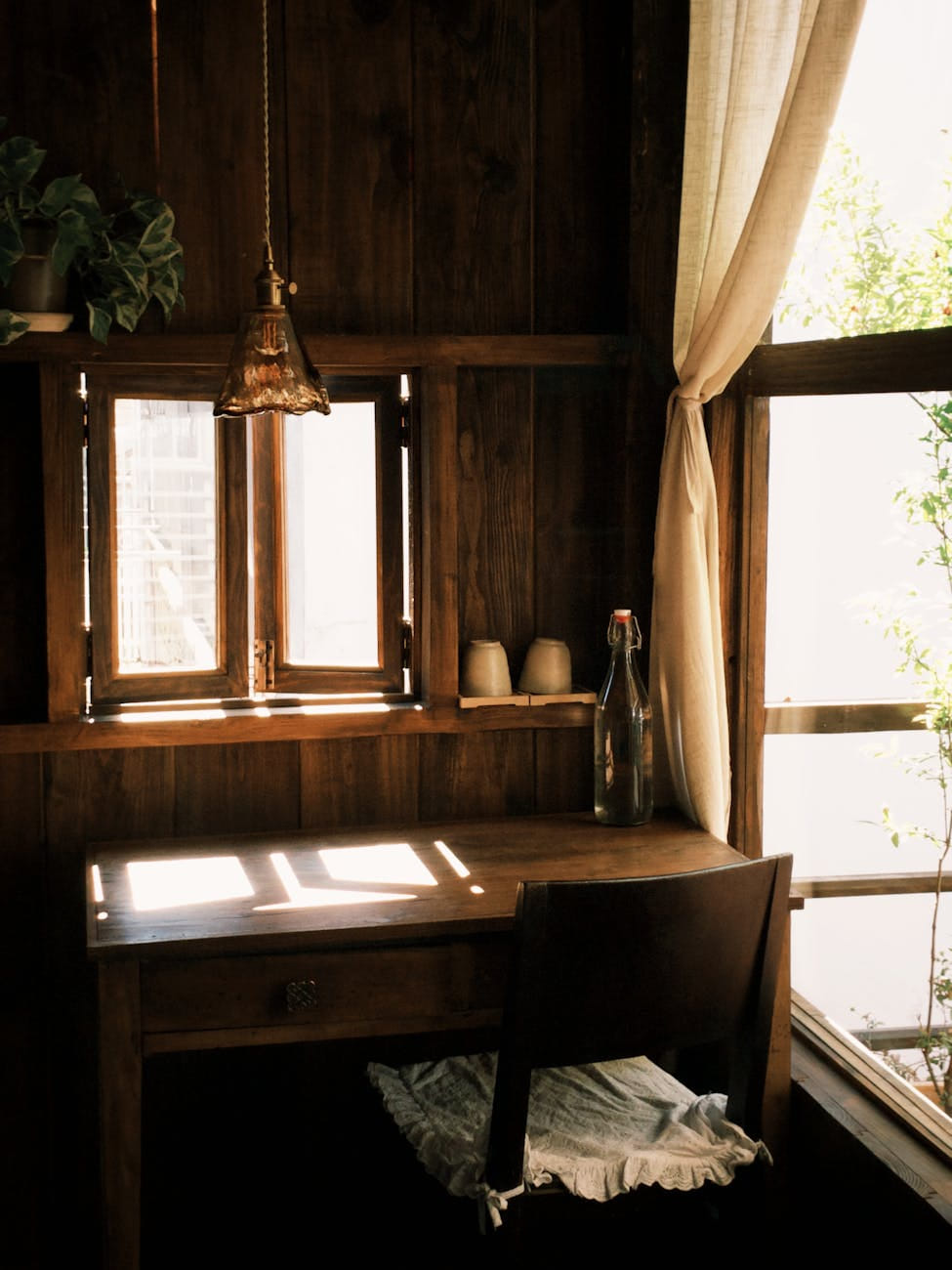 A charming kitchen in Amsterdam with plants, spices, and natural light, displaying timeless charm.