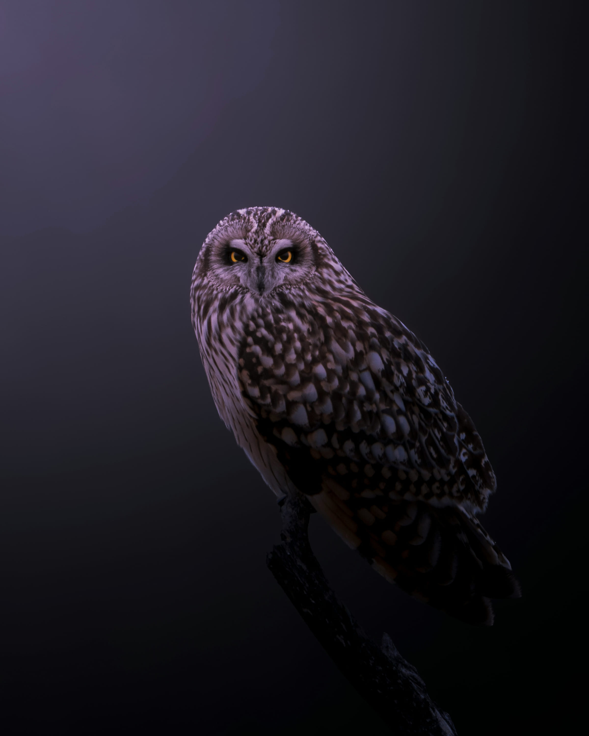 An owl sitting on a branch in the dark