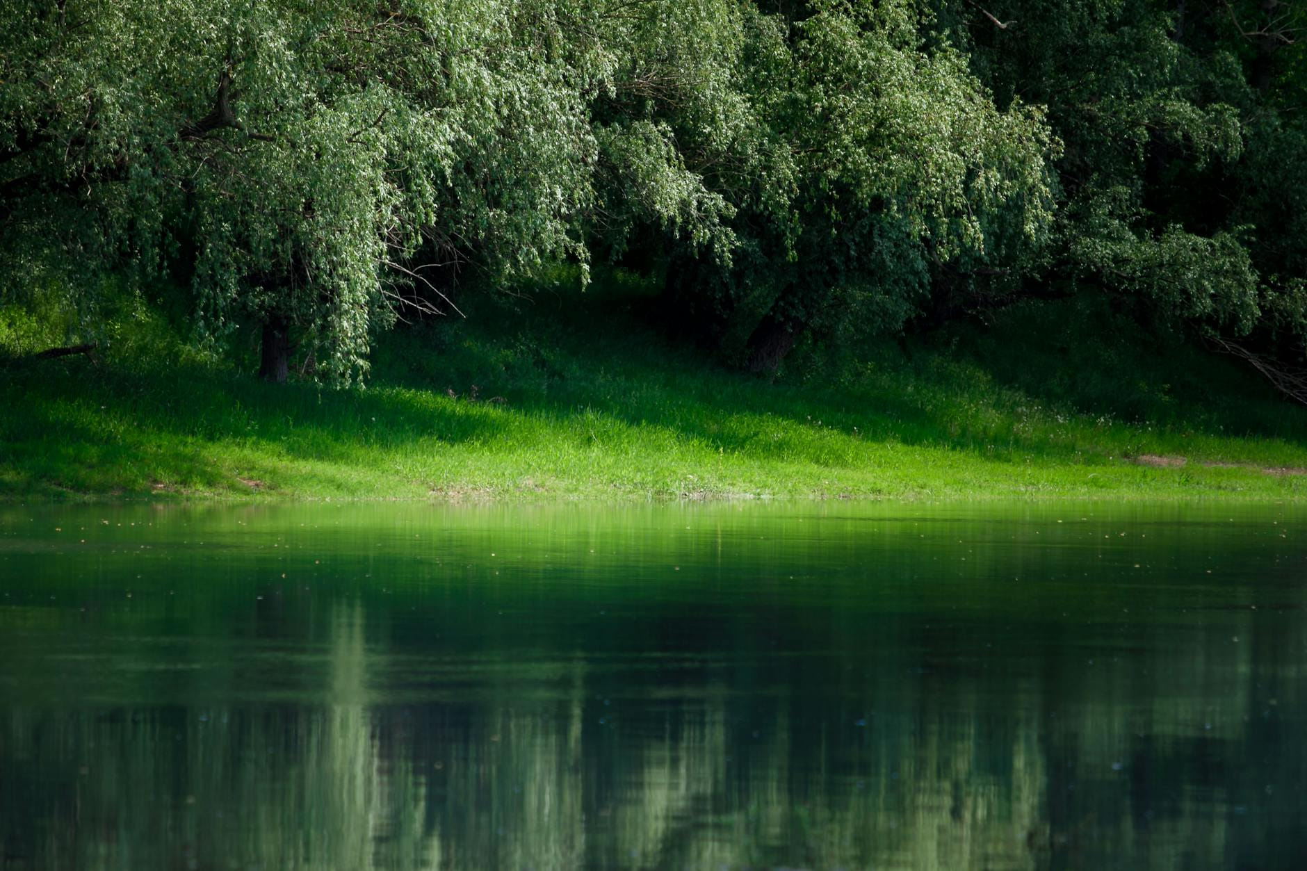 Captivating willow trees by a river in a serene autumn landscape, capturing the essence of tranquility.