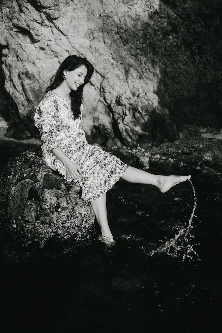 Artistic portrait of a person outdoors with motion blur effect, emphasizing movement and expression.