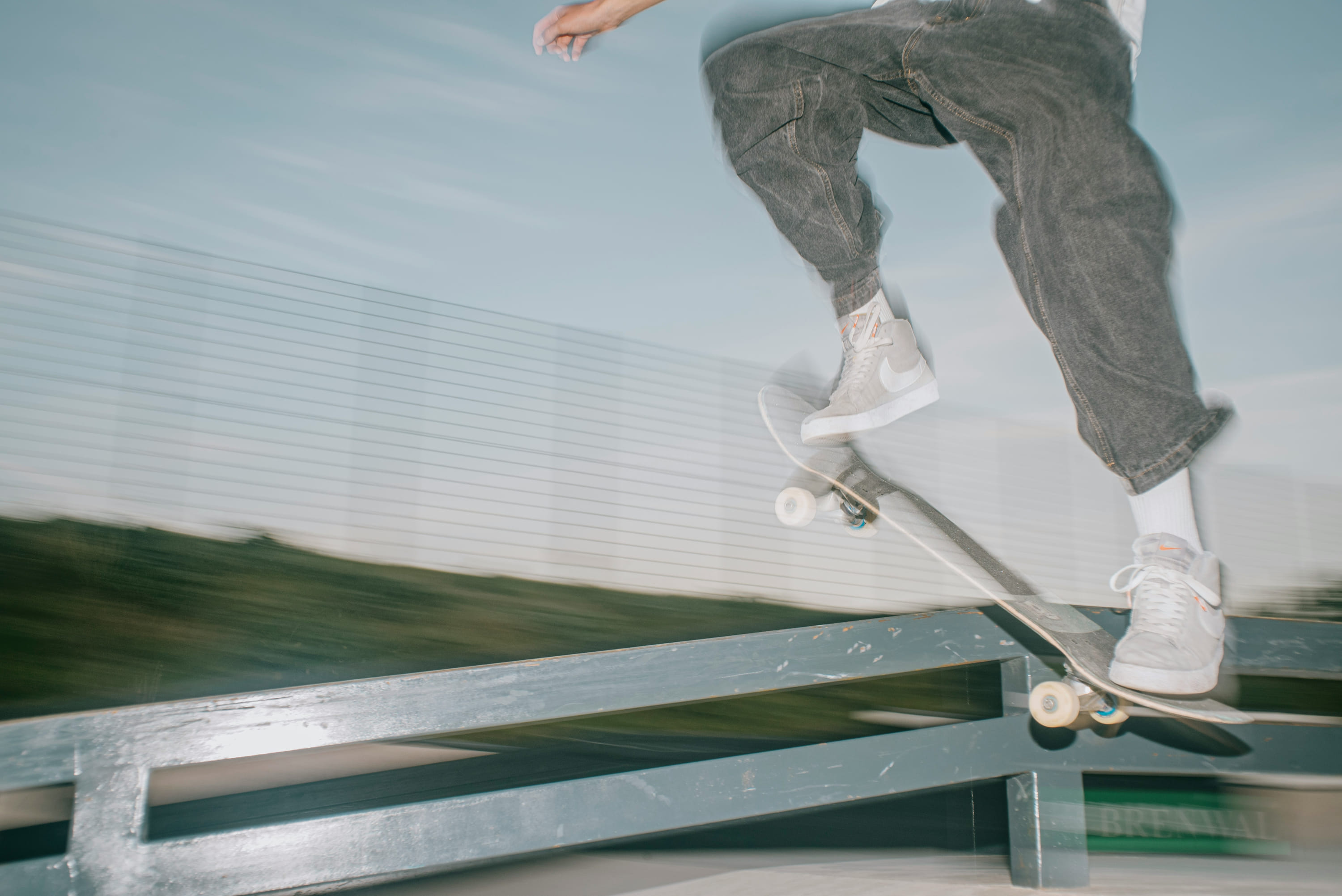Artistic portrait of a person outdoors with motion blur effect, emphasizing movement and expression.