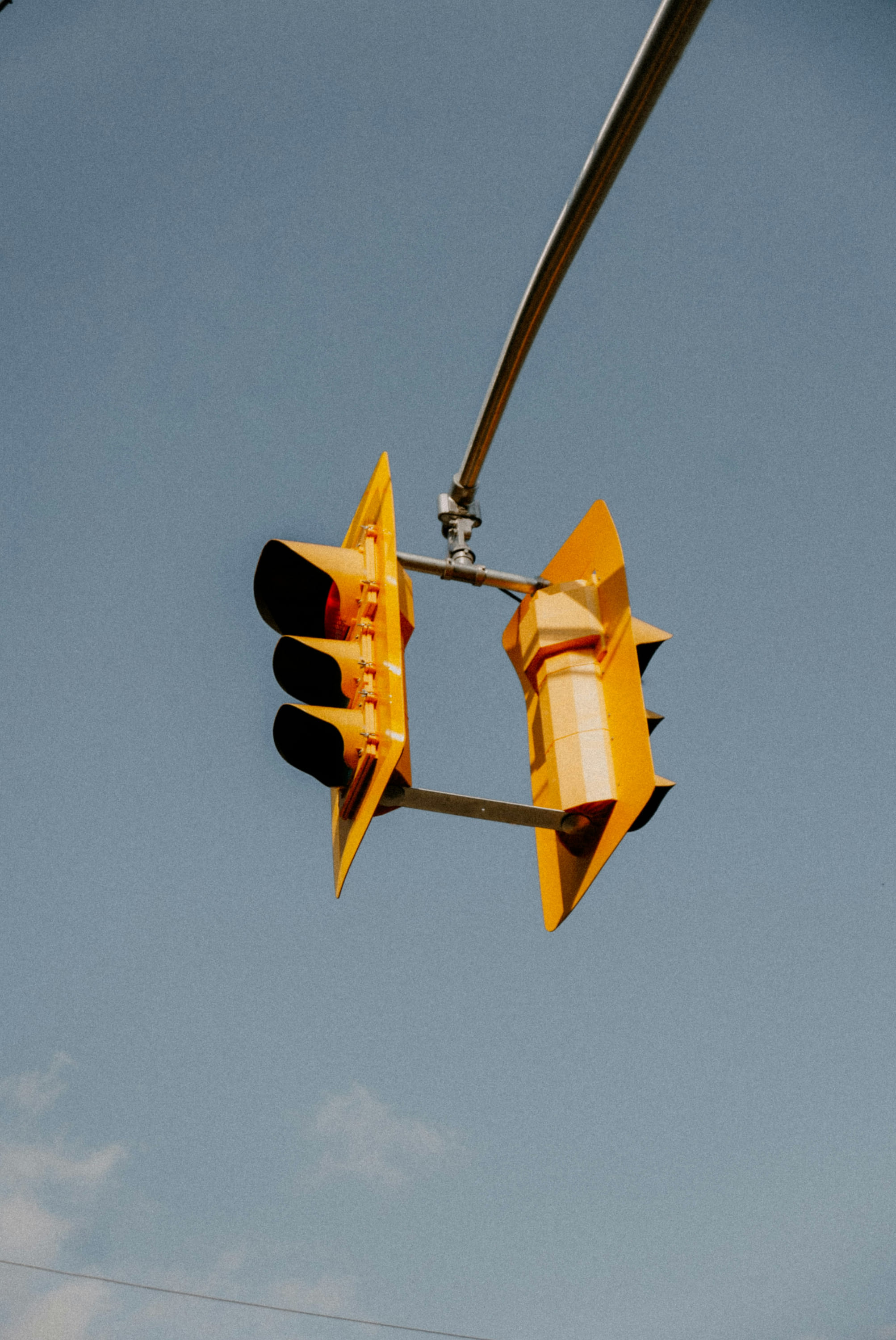 A daring wingwalker performs a stunt on a pink vintage biplane in clear sky.
