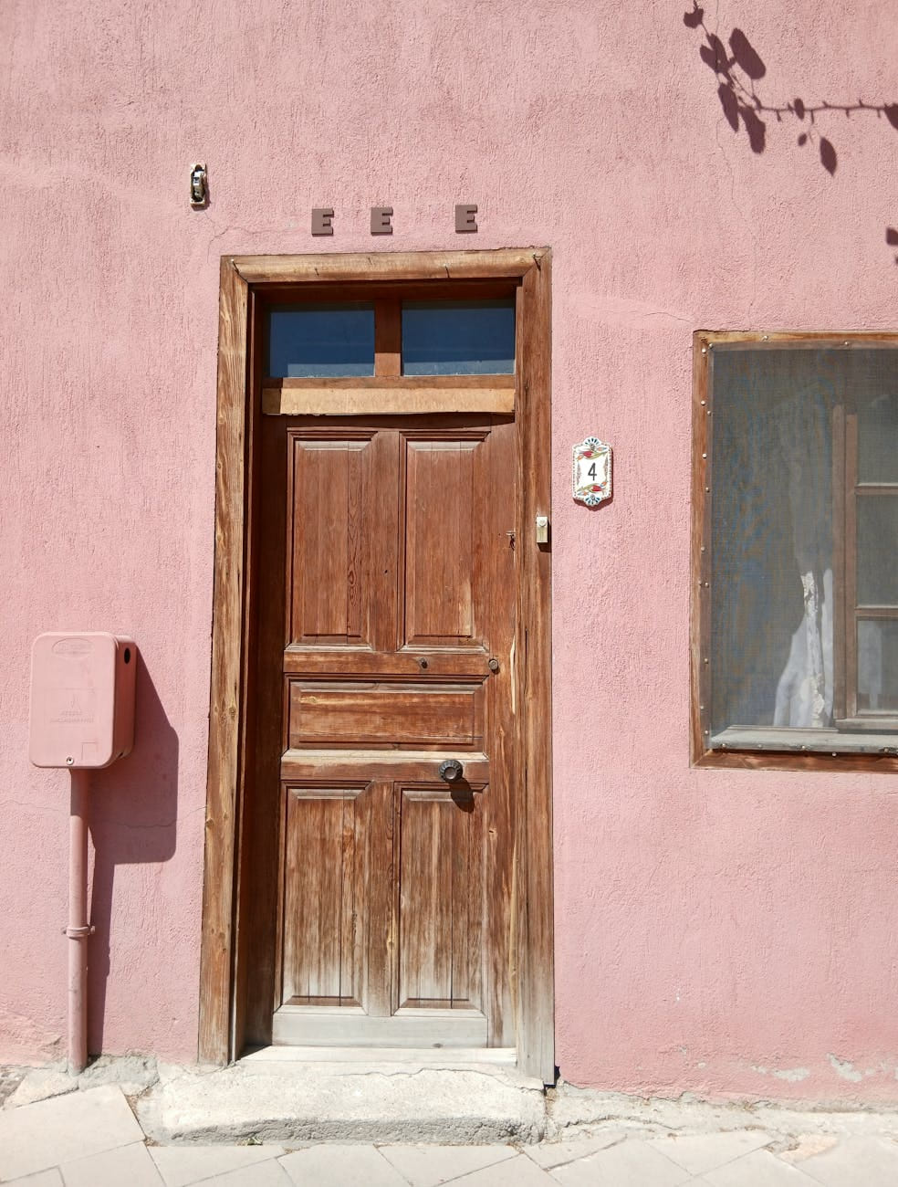 Elegant old building facade with sunlight filtering through autumn leaves, creating a warm, nostalgic atmosphere.