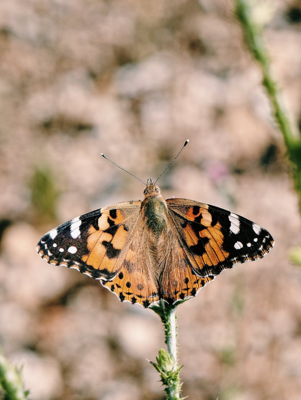 A silhouette of a seagull flying over the ocean at sunset against a vibrant sky.