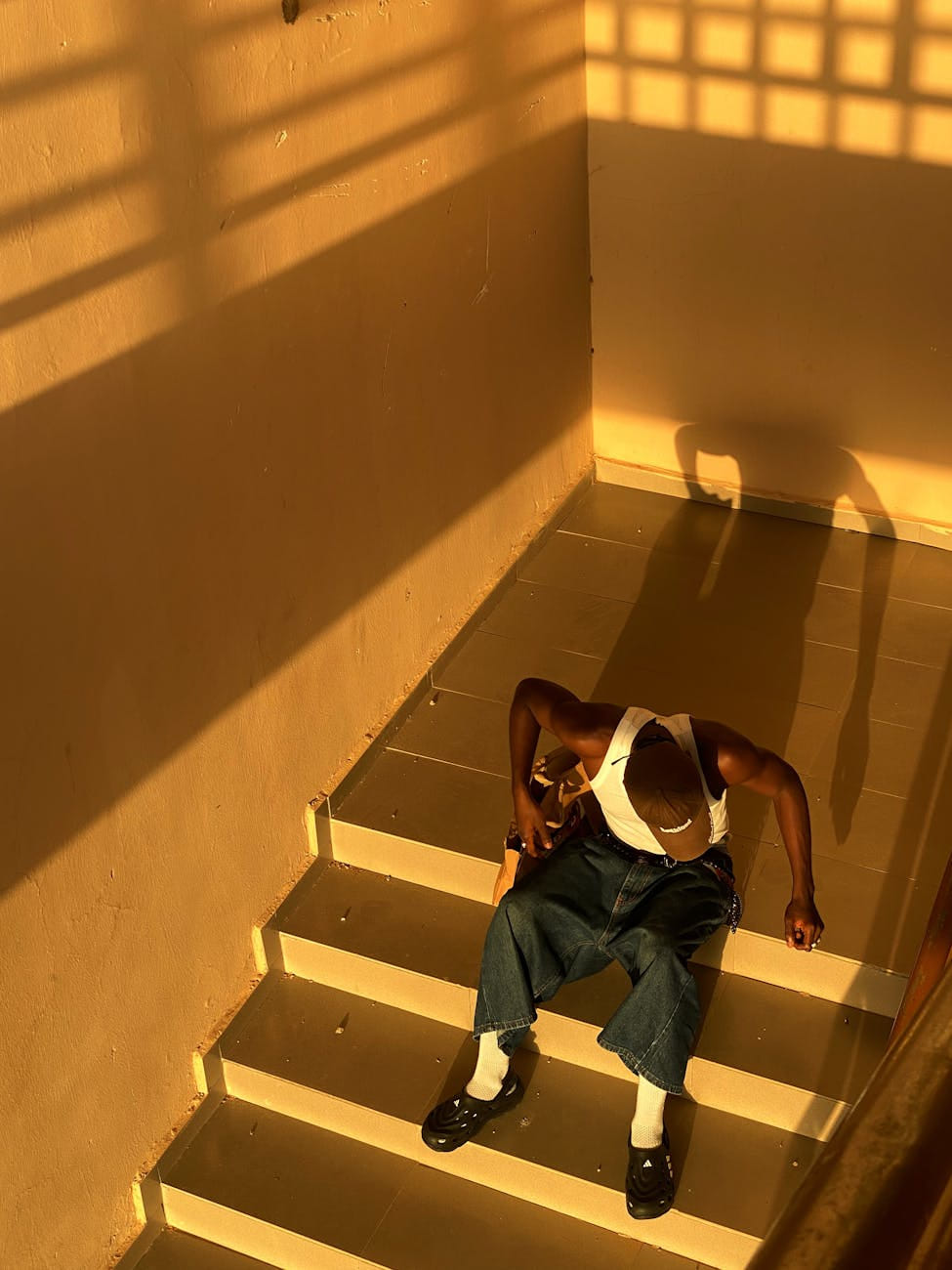 Artistic portrait of a person outdoors with motion blur effect, emphasizing movement and expression.