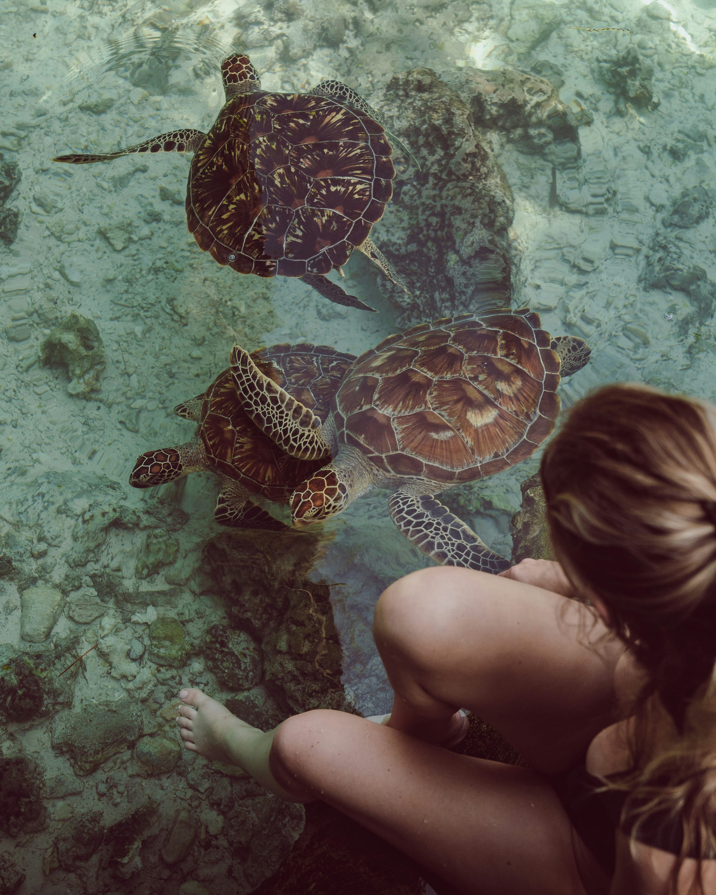 A breathtaking view of rugged cliffs and a serene beach with swimmers enjoying the ocean waves.