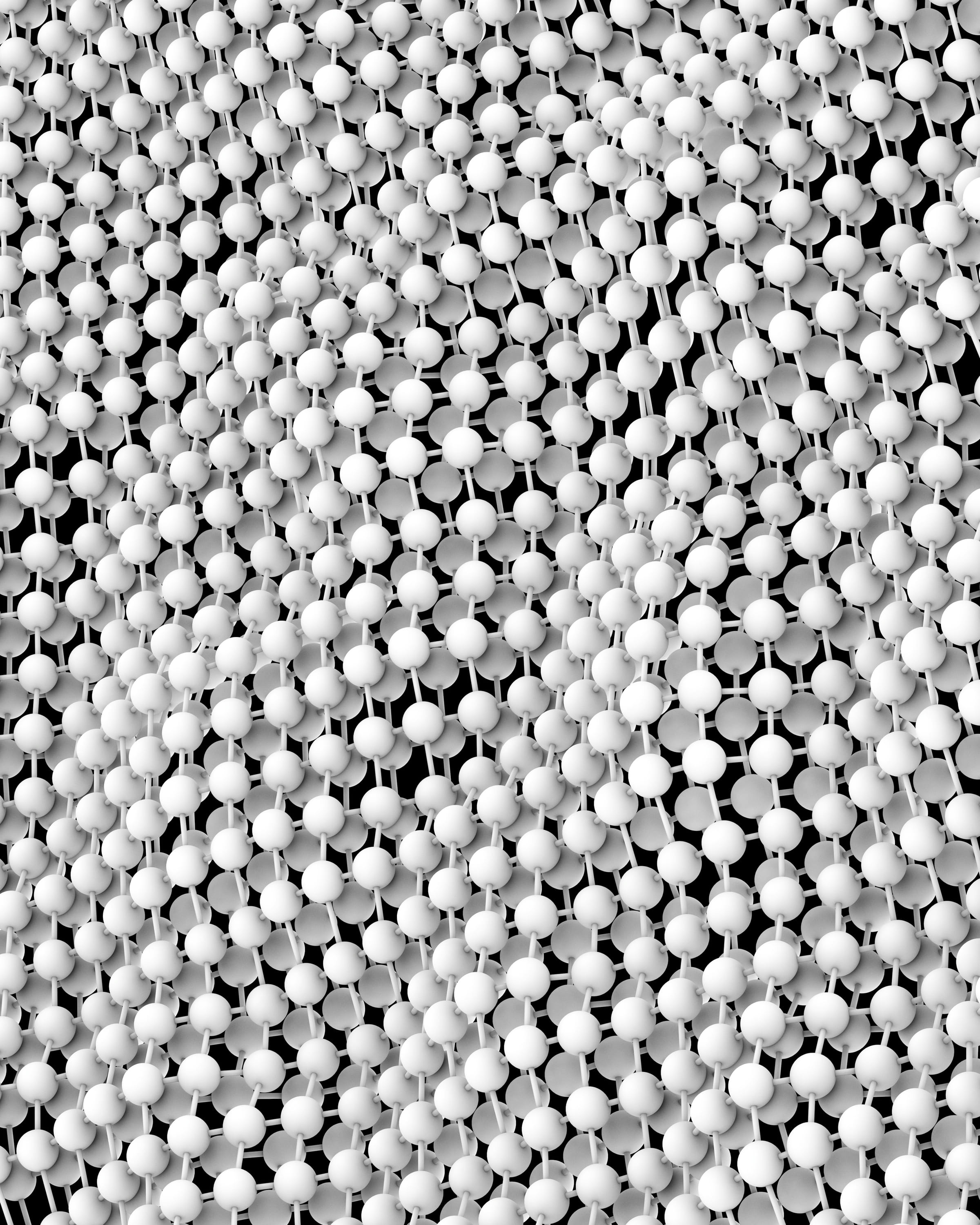 Detailed black and white texture of a palm leaf showing natural patterns and veins.