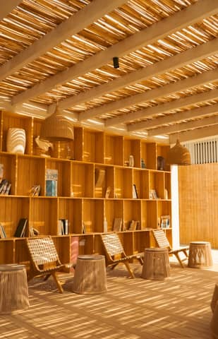 White table with a coffee cup, book, and tablet in a cozy living room setting.