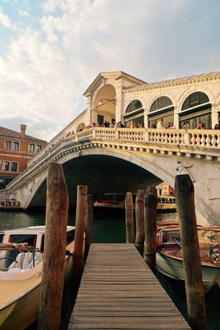 Explore the historic Rialto Bridge and vibrant Venice canal life. Ideal travel imagery.