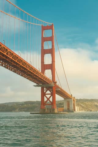 Iconic view of the Golden Gate Bridge spanning over water in San Francisco.