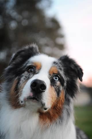 A cute small dog peeking from a shop entrance on a cobblestone street in Graz, Austria.