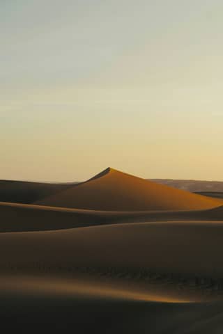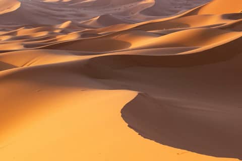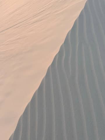 Close-up of wavy sand dune patterns under warm sunlight, creating a natural abstract art.