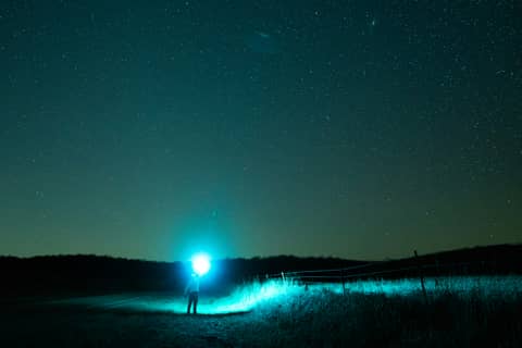 Sunrise illuminates a beautiful lake and snowy mountains.