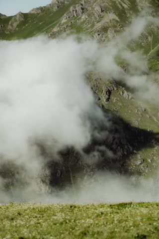 Captivating misty mountain scene in Aosta Valley, Italy, showcasing nature's serene beauty.