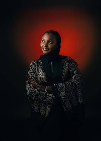 Black and white portrait of two women wearing hijabs, showcasing cultural identity and connection.