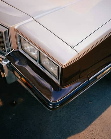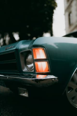Close-up of a classic red Ford Maverick showcasing shiny chrome details in São Paulo, Brazil.