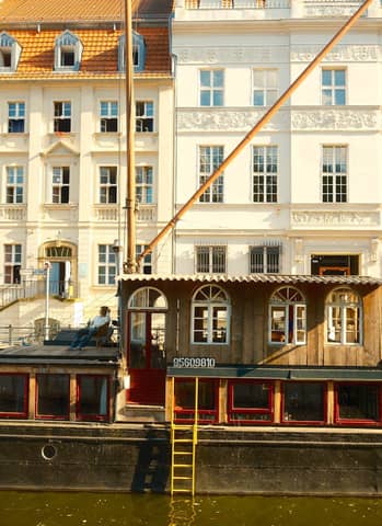 Elegant vintage hotel sign in city scene, bathed in warm sunlight, showcasing urban architecture.