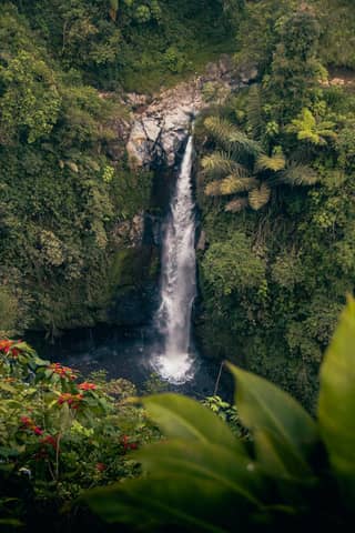 A stunning photograph of a bird perched on a branch, set against a vibrant tropical forest backdrop.