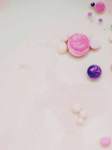 Frozen mochi spheres in a pink bowl on a pastel background create a minimalistic and vibrant food composition.