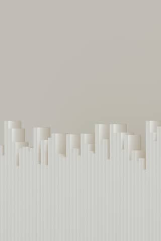 Abstract skyline comprised of cylinders and lines.