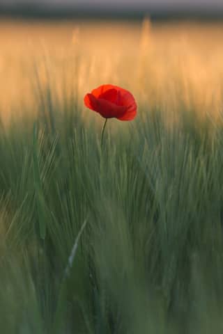 Vibrant red tulip stands alone amidst lush greenery, capturing the essence of spring's renewal.