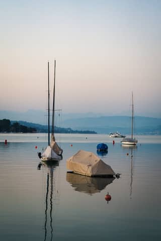 A serene view of yachts sailing on the Aegean Sea with mountainous backdrop.