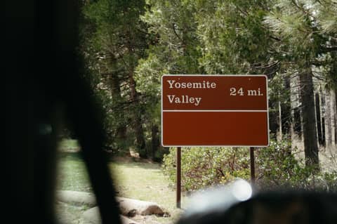 Yellow warning sign on steep cliffs of Big Sur coast, California.