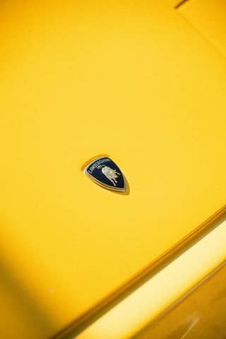 Lamborghini logo on a bright yellow surface.