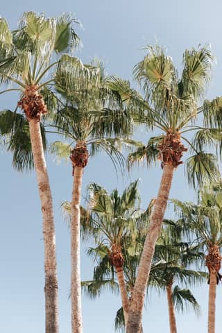 Elegant palm trees reaching into the clear blue sky, capturing the essence of a sunny day in La Paz, Mexico.