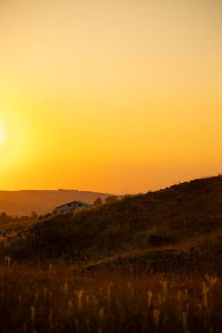 Captivating sunset view over Yalova hillside with warm golden hues and peaceful ambiance.