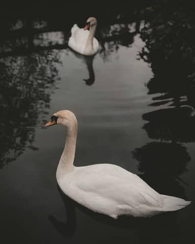 Serene image of a white swan gracefully gliding on calm water reflecting tranquility.