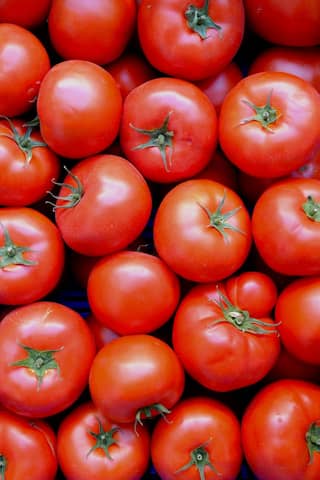 Close-up of vibrant red tomatoes on display, perfect for cooking or salad.