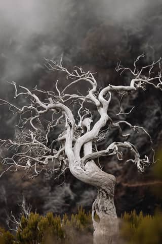 Serene view of mist-covered forested mountains in the Carpathians, Ukraine.