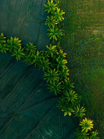 Free stock photo of aerial photography, cinematic drone shot, coconut trees